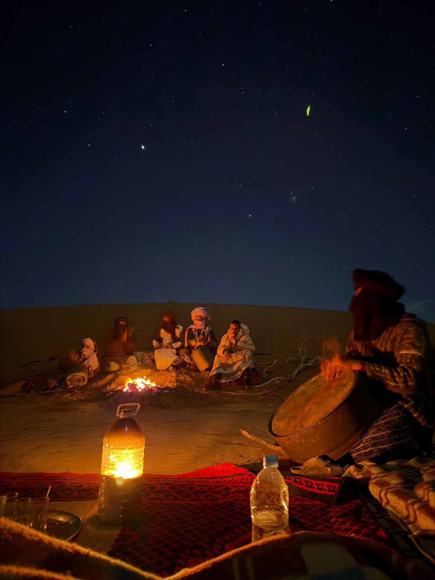 Les 7 nomades ont été formidables. Nous avons énormément échangé, ri, partagé et souri. Le réveillon du 31 décembre restera gravé dans ma mémoire : nous l’avons célébré autour du feu, en chantant, dansant et en jouant ensemble. L’équipe des nomades nous avait réservé une magnifique surprise en inscrivant « Bonne année 2026 » avec des bougies dans le sable : un moment à la fois simple, émouvant et magique.