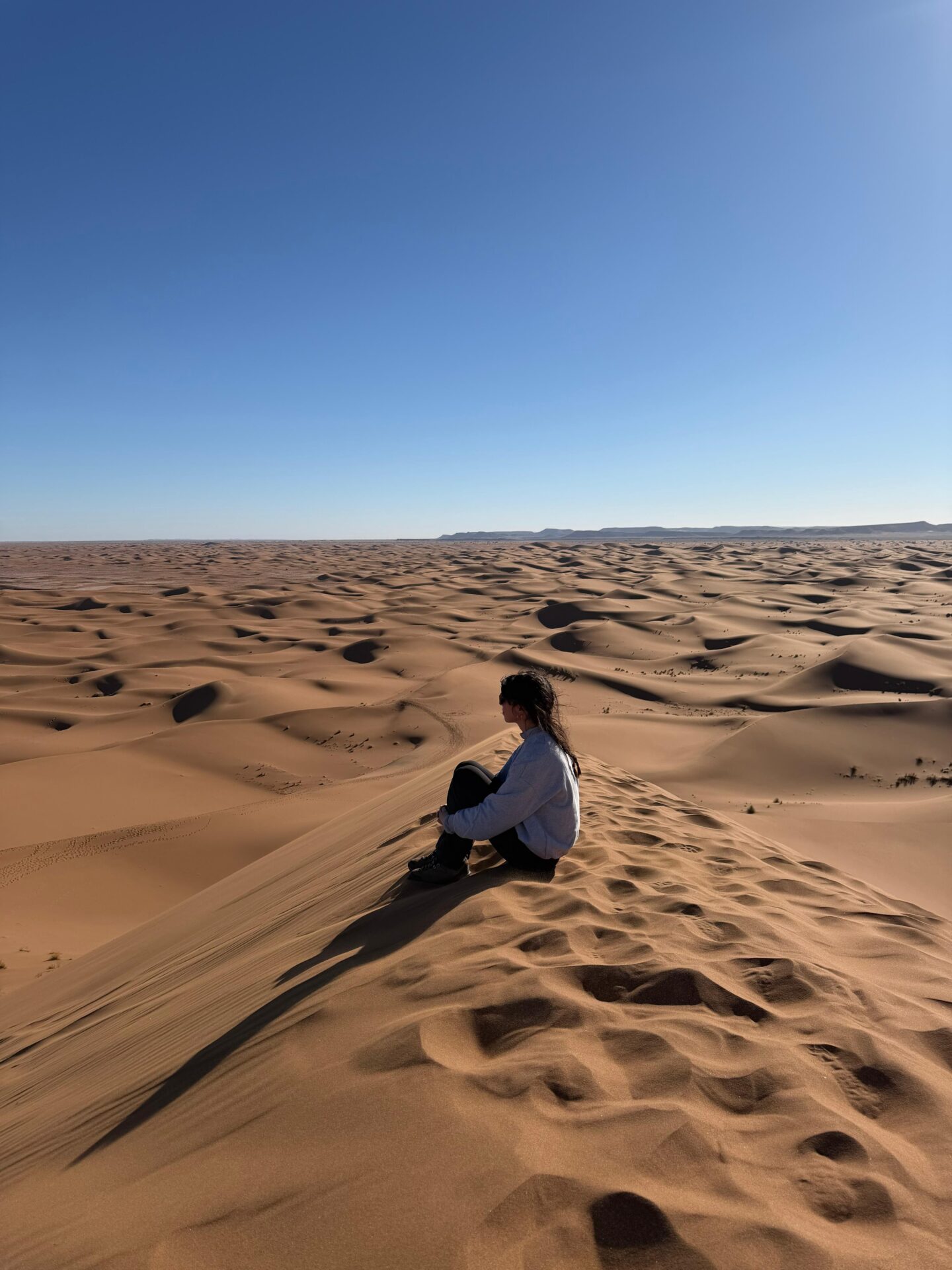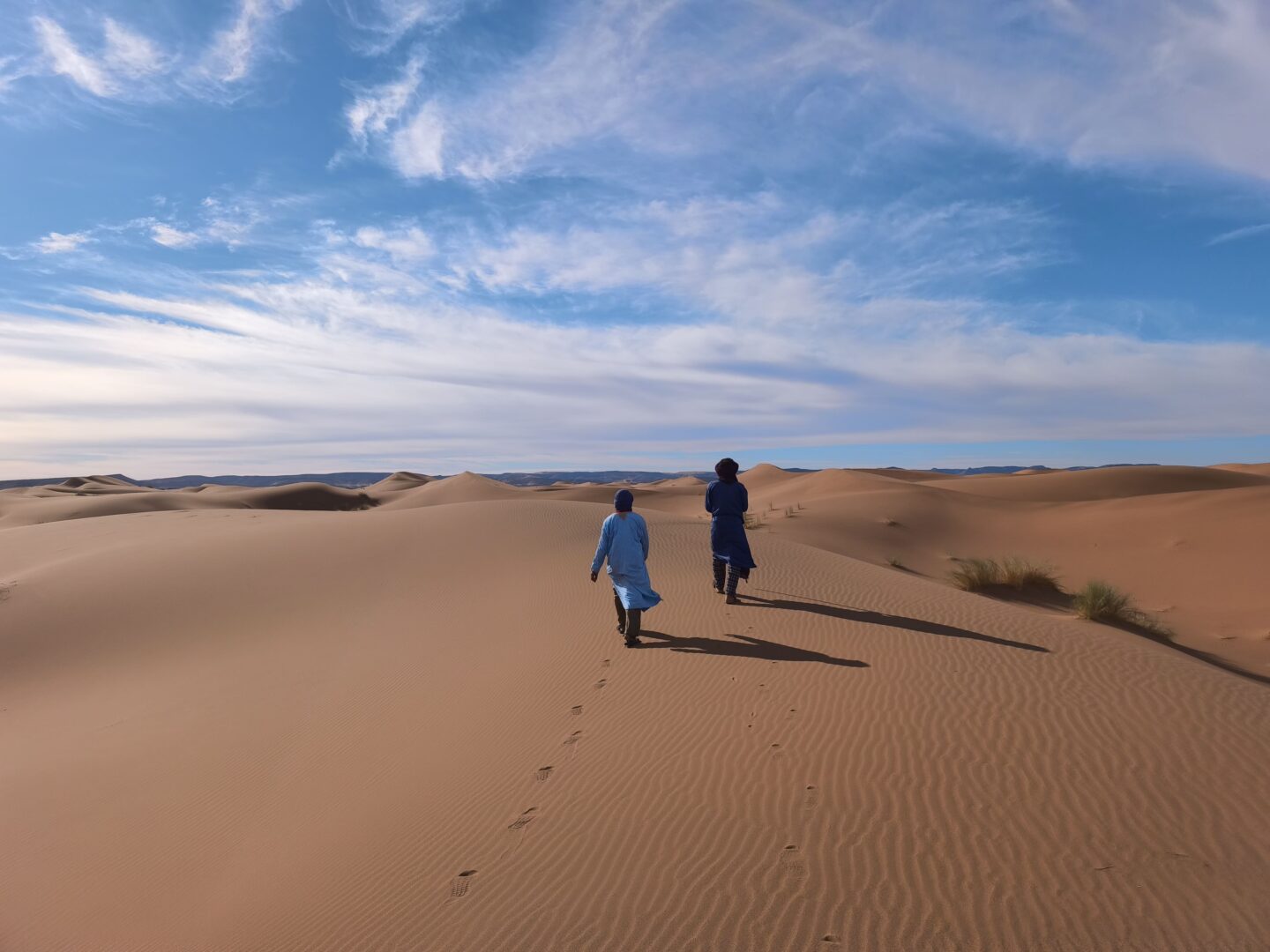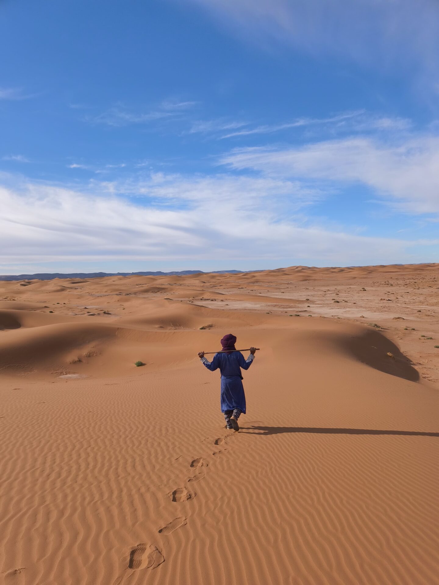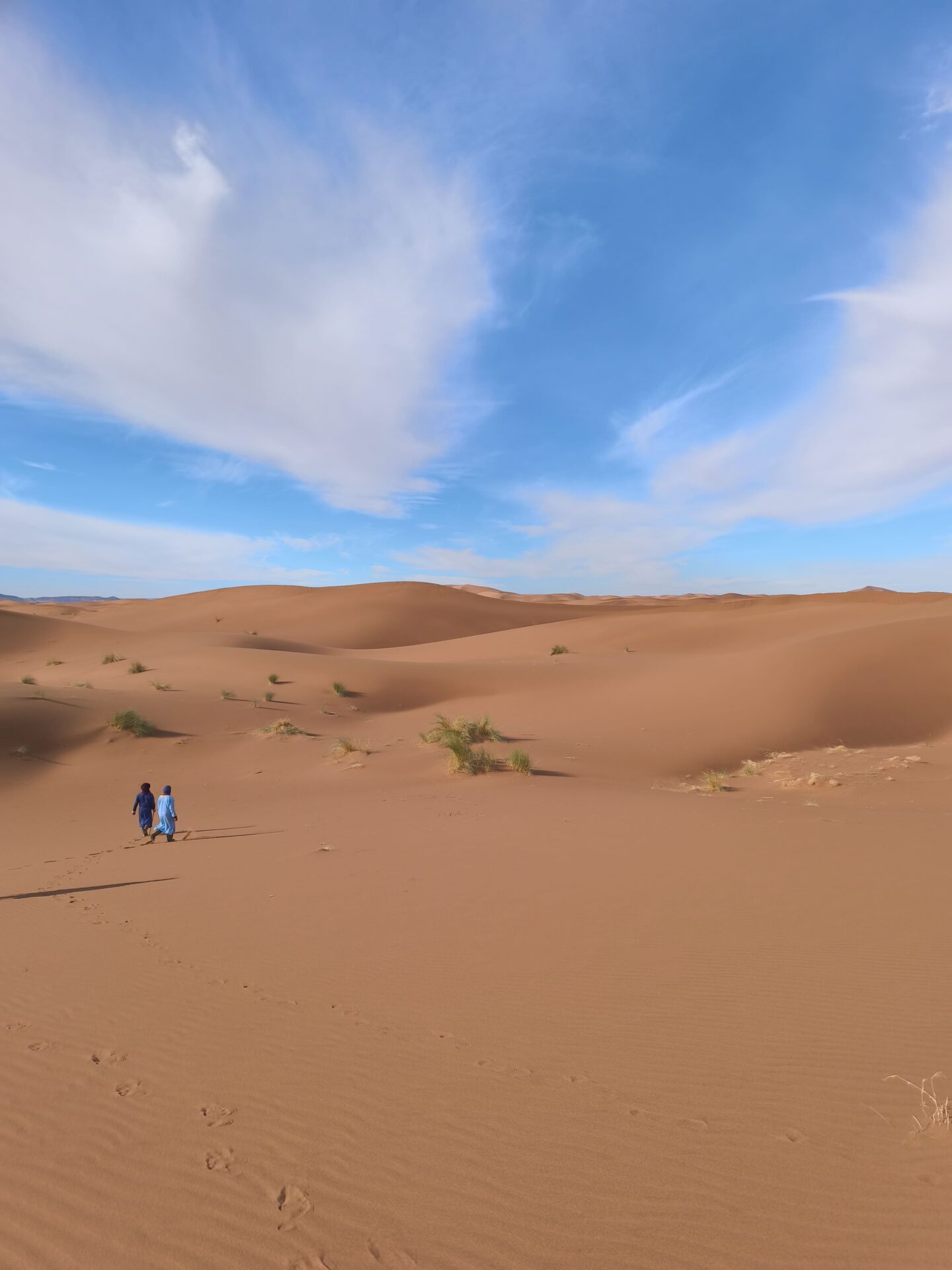 Nous avons souvent marché pieds nus, et la sensation était tout simplement incroyable : le contact du sable chaud, la douceur du sol sous les pieds, et cette impression unique d’être en parfaite connexion avec le désert.