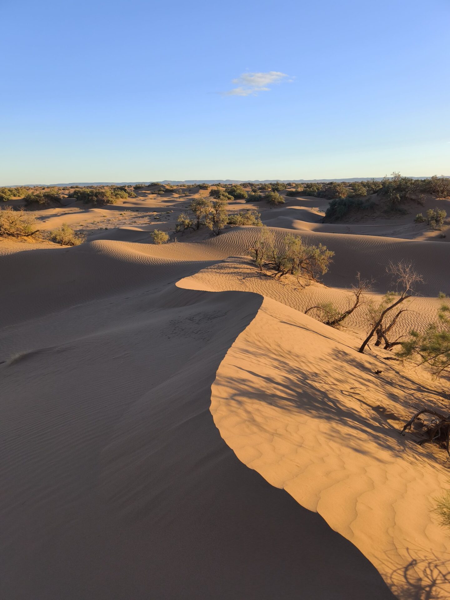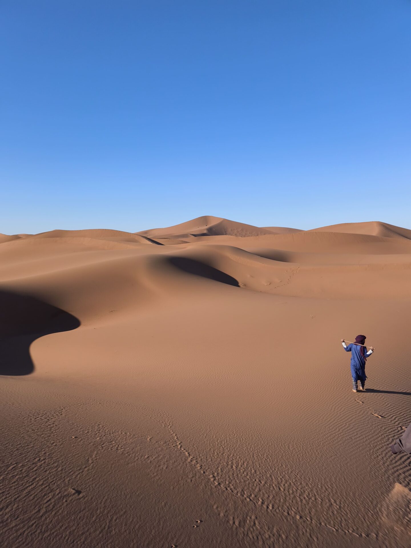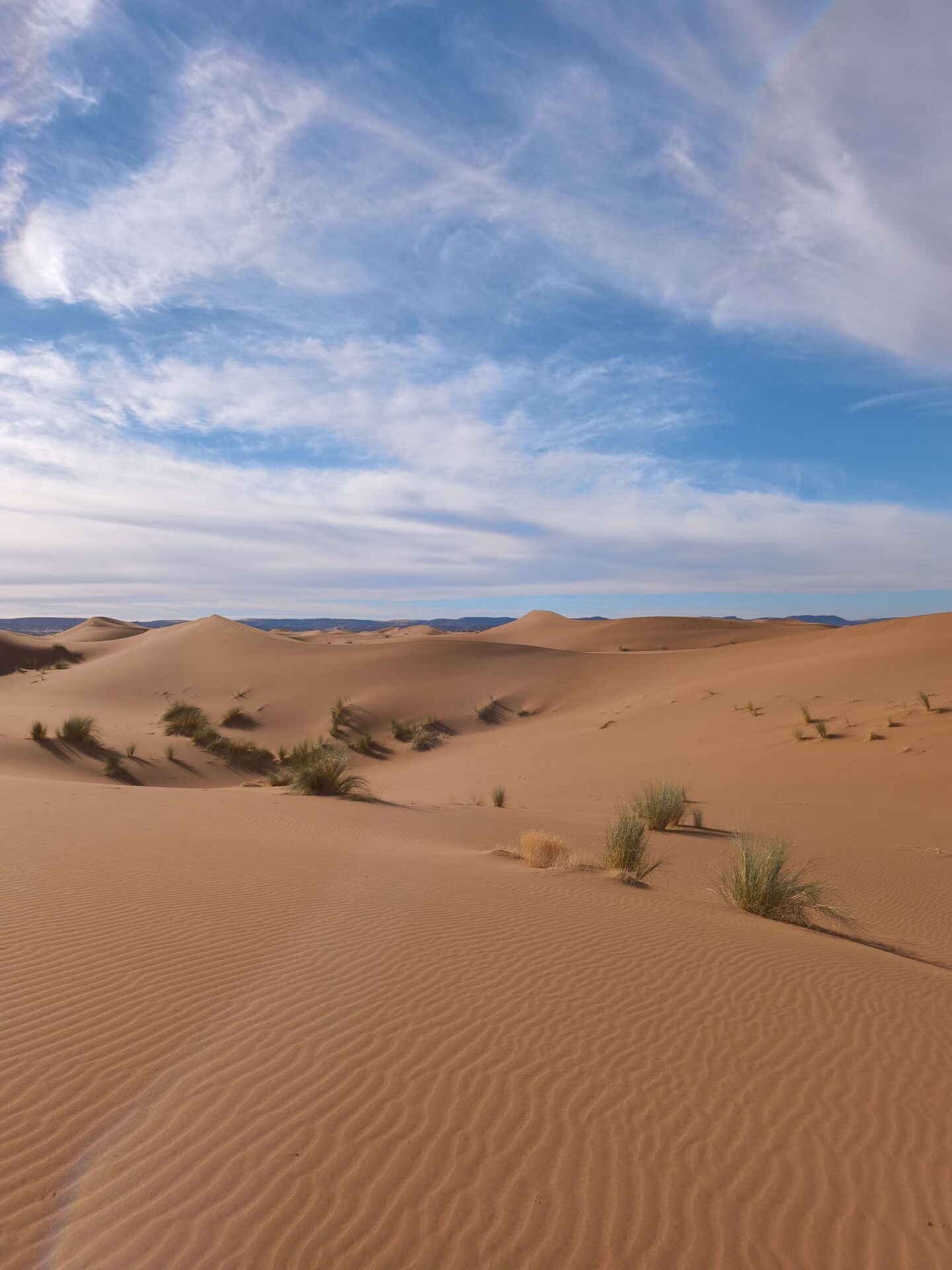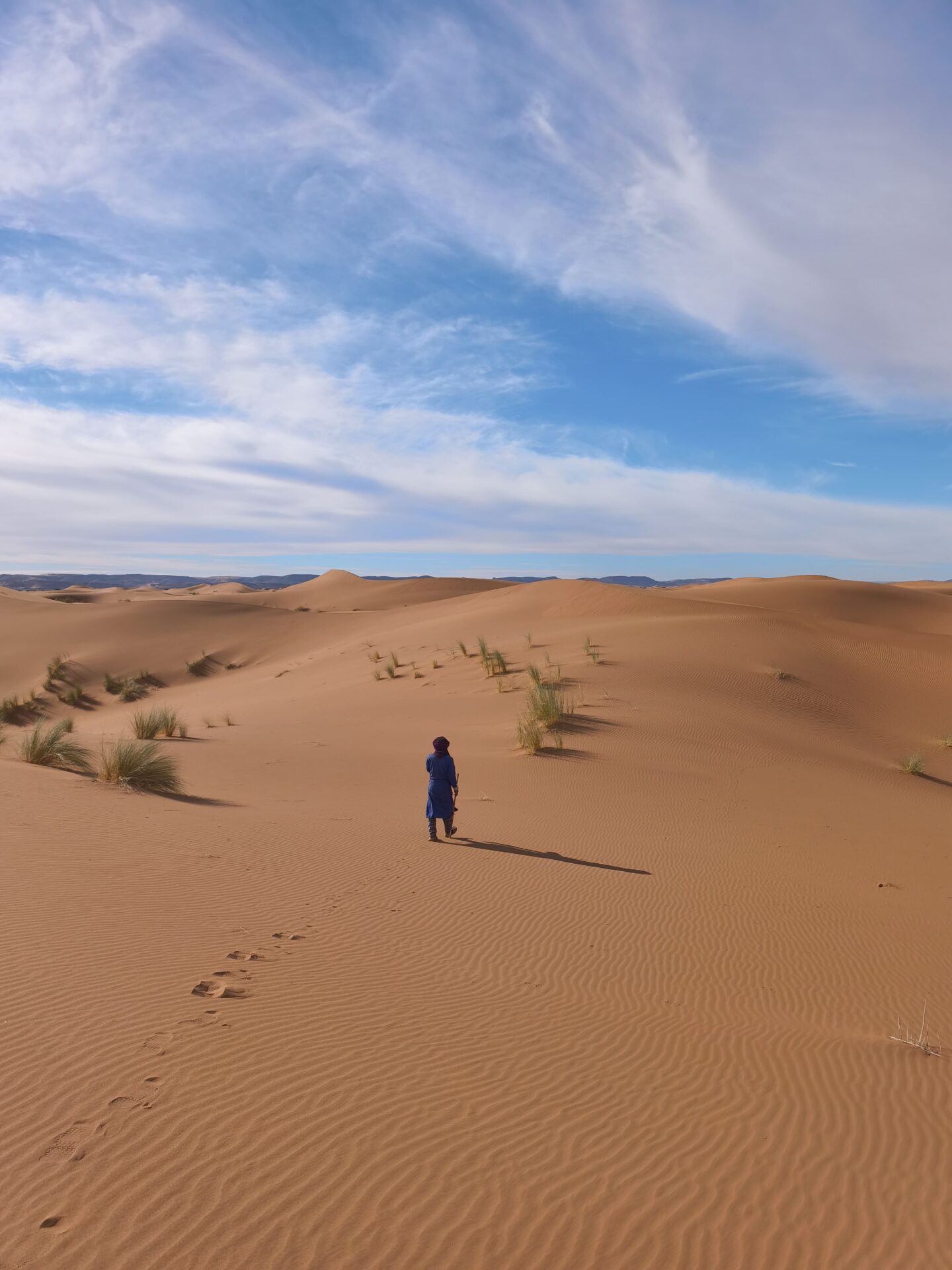 Nous avons souvent marché pieds nus, et la sensation était tout simplement incroyable : le contact du sable chaud, la douceur du sol sous les pieds, et cette impression unique d’être en parfaite connexion avec le désert.
