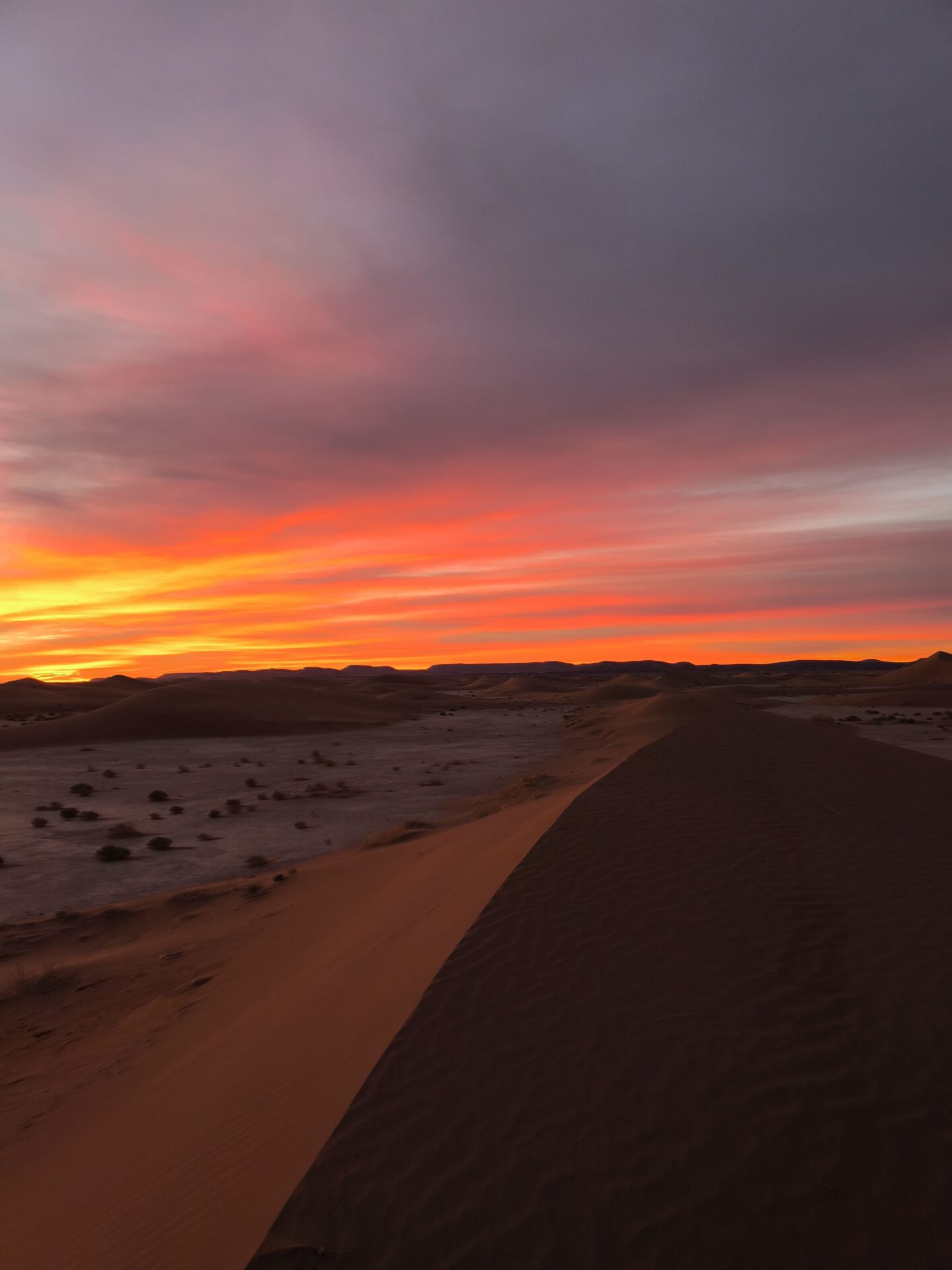 Les couchers de soleil restent des instants hors du temps. Ce rituel de fin de journée consistant à dénicher le plus beau spot pour admirer le soleil disparaître à l’horizon, dans un silence absolu face à l’immensité du désert, était tout simplement magique.