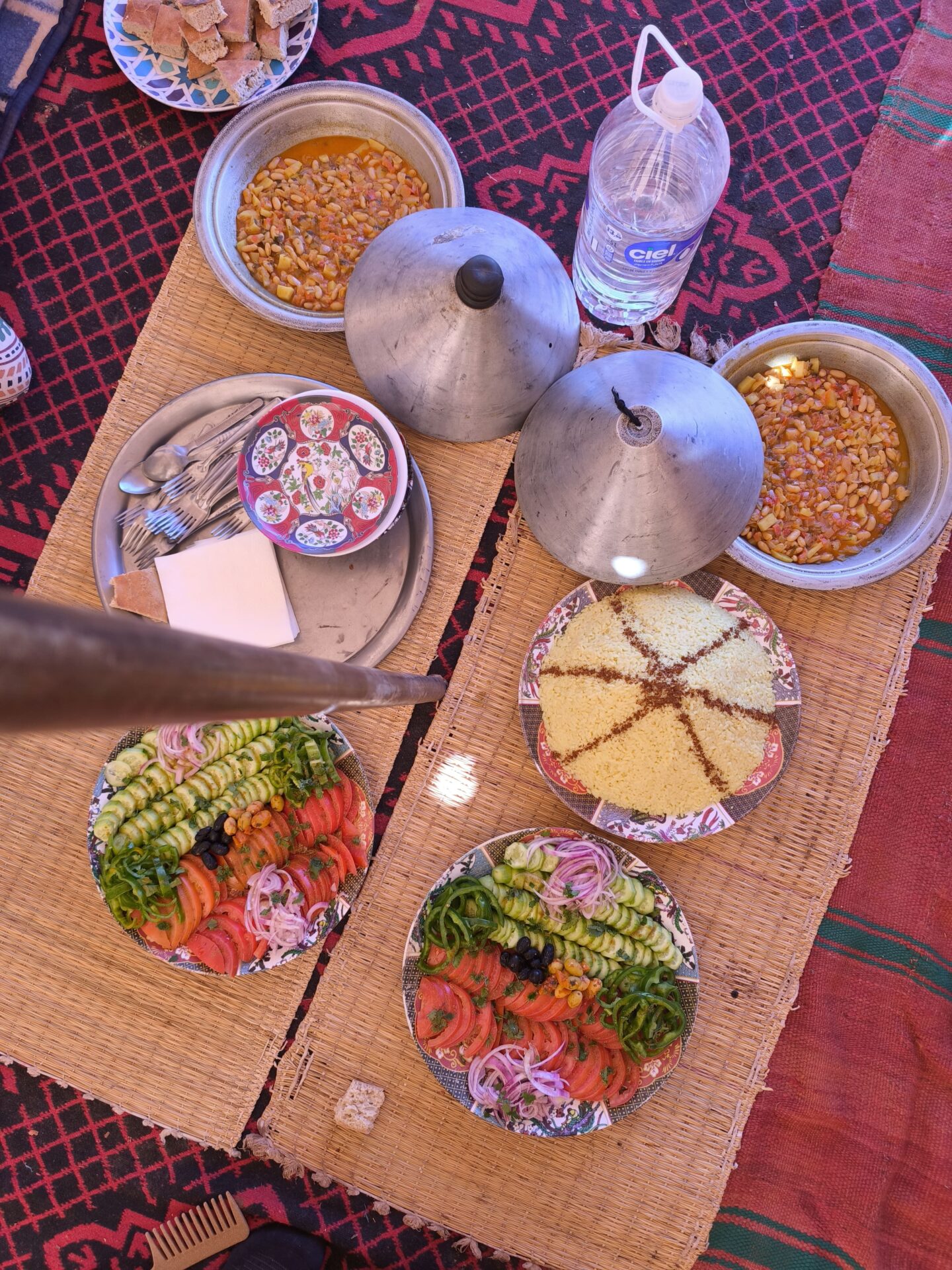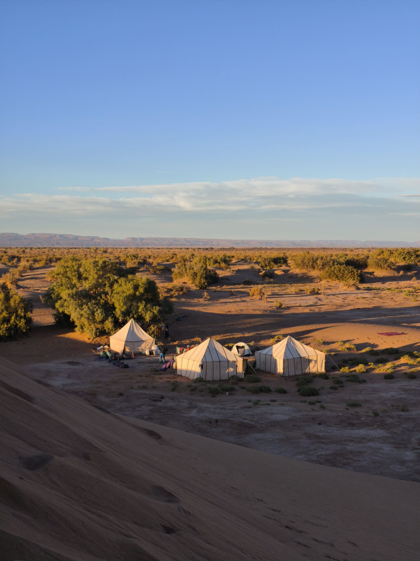 La première nuit s’est déroulée en bivouac fixe, aux portes du désert. Par la suite, nous avions le choix entre dormir sous les tentes berbères ou passer la nuit à la belle étoile. Une expérience simple, authentique et absolument magique.