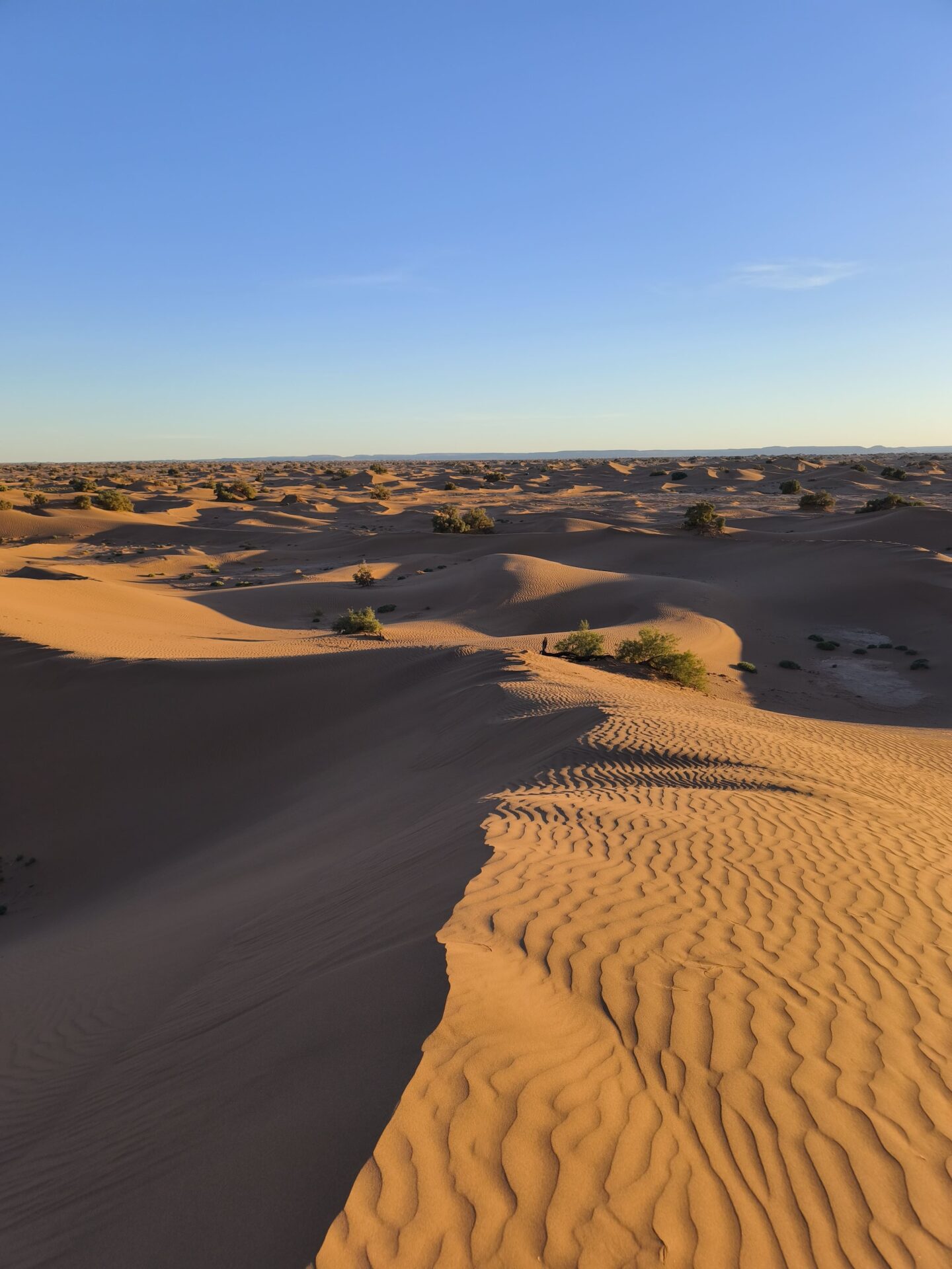 Je craignais des paysages monotones, mais c’était tout l’inverse. Le décor ne cessait de changer : plateaux rocheux, dunes majestueuses, et parfois même quelques touches de verdure malgré la sécheresse omniprésente. Nous avons longé la frontière algérienne, renforçant encore ce sentiment d’être au bout du monde.